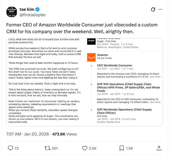 התחלתי את הפרויקט הזה לפני שבועיים, והשבוע, בטיימינג מושלם, בכיר לשעבר באמזון כתב פוסט בו שיתף איך הוא בנה לחברה החדשה שלו CRM בסובשבוע.