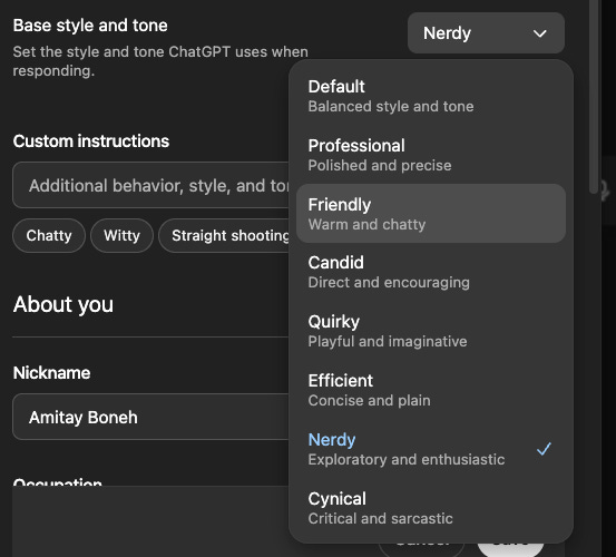 כי החל מעכשיו, אם תבקשו ממנו להפסיק להשתמש במקפים ארוכים בהגדרות ה-Custom instructions - הוא יקשיב לכם,