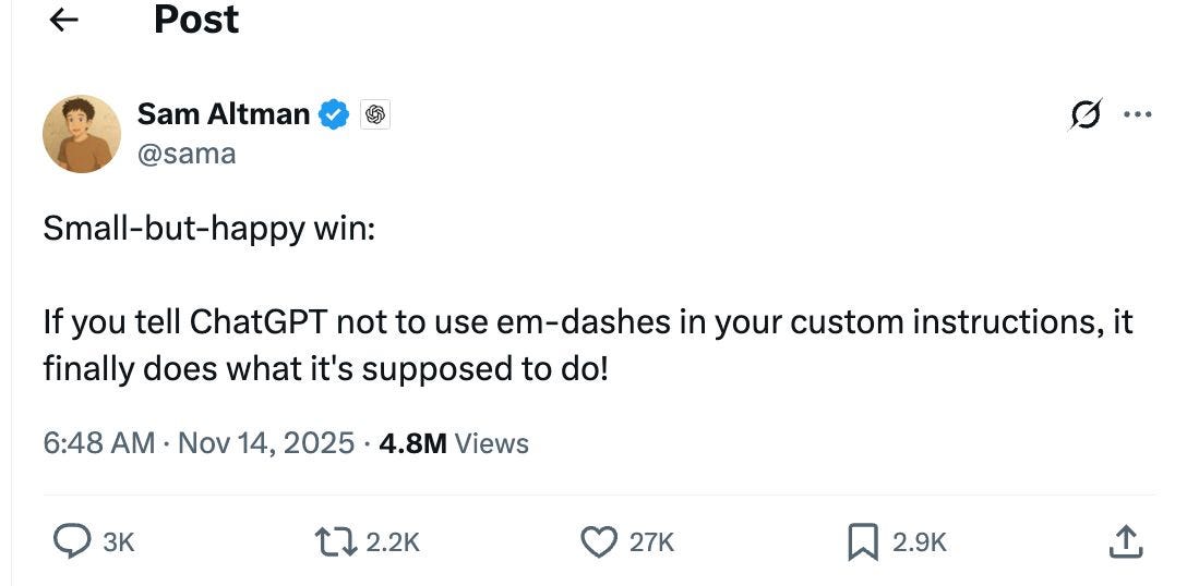 אגב, מסתבר שהנושא הזה מעסיק המון אנשים, ואפילו סם אלטמן הקדיש ציוץ מיוחד לנושא (שקיבל יותר הדים ברשתות מההכרזה על המודל עצמו).