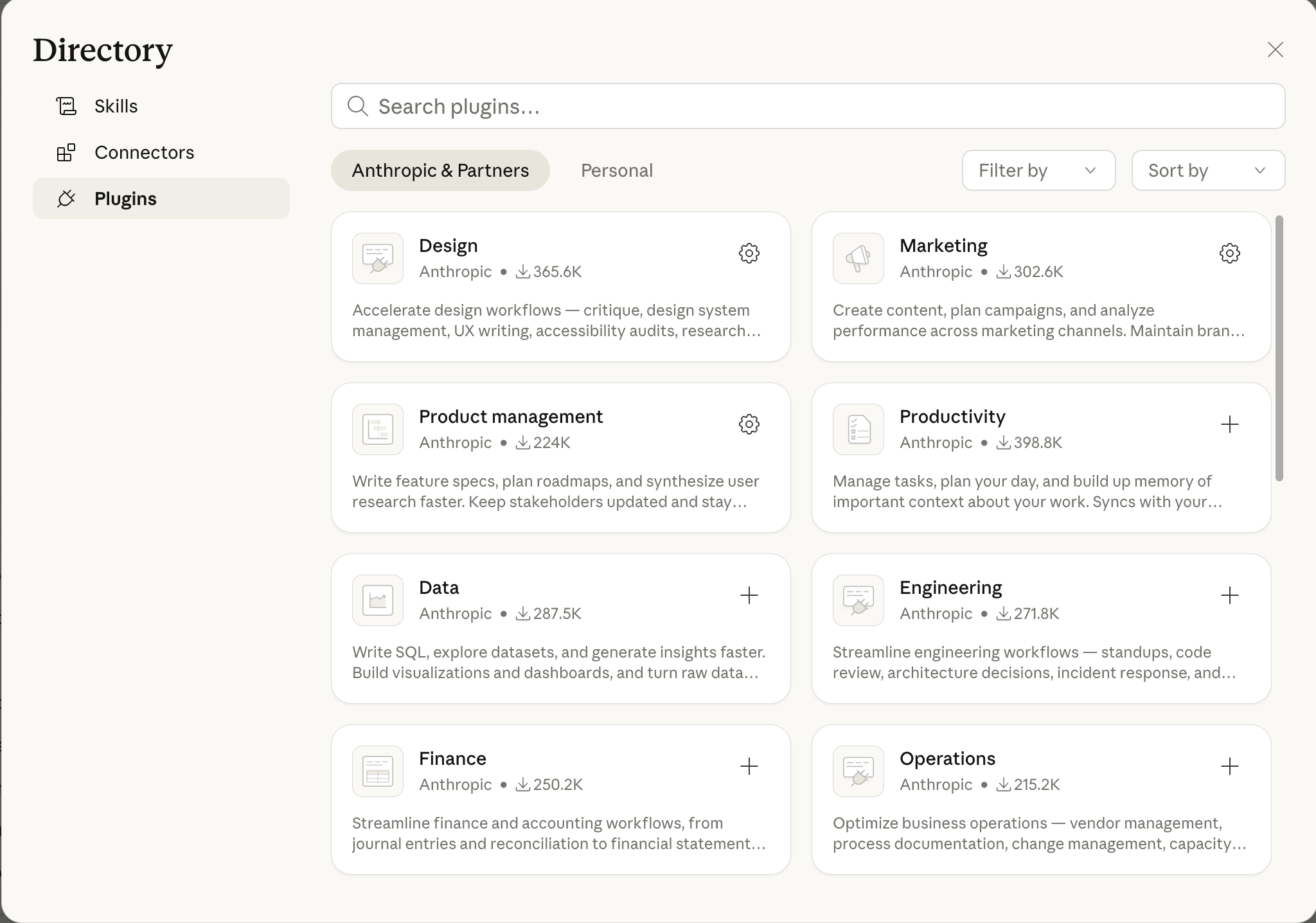 אם אין לכם זמן או רצון לבנות סקילס מאפס, אנתרופיק הוסיפו אפשרות להוריד Plugins, שהם בעצם חבילות של סקילס מוכנות שהם כבר בנו עבורכם.
