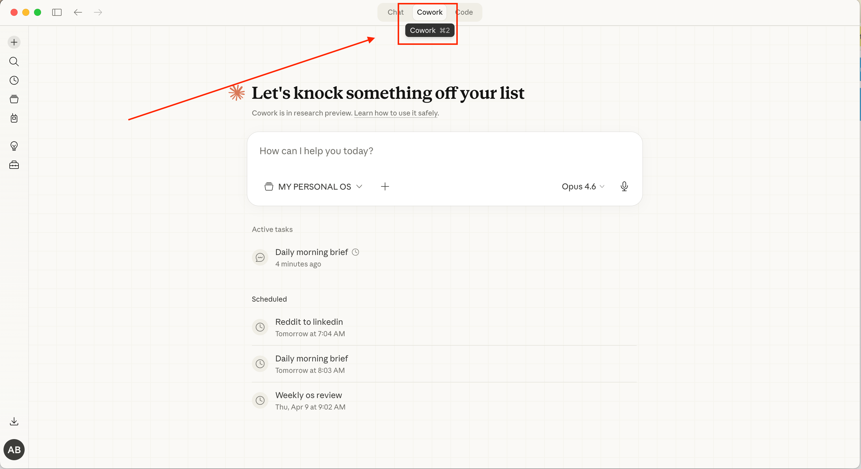 Cowork הוא כלי שאנתרופיק הוציאו בתחילת השנה. נכון להיום הגישה אליו היא רק דרך אפליקציית קלוד לדסקטופ, בטאב נפרד.