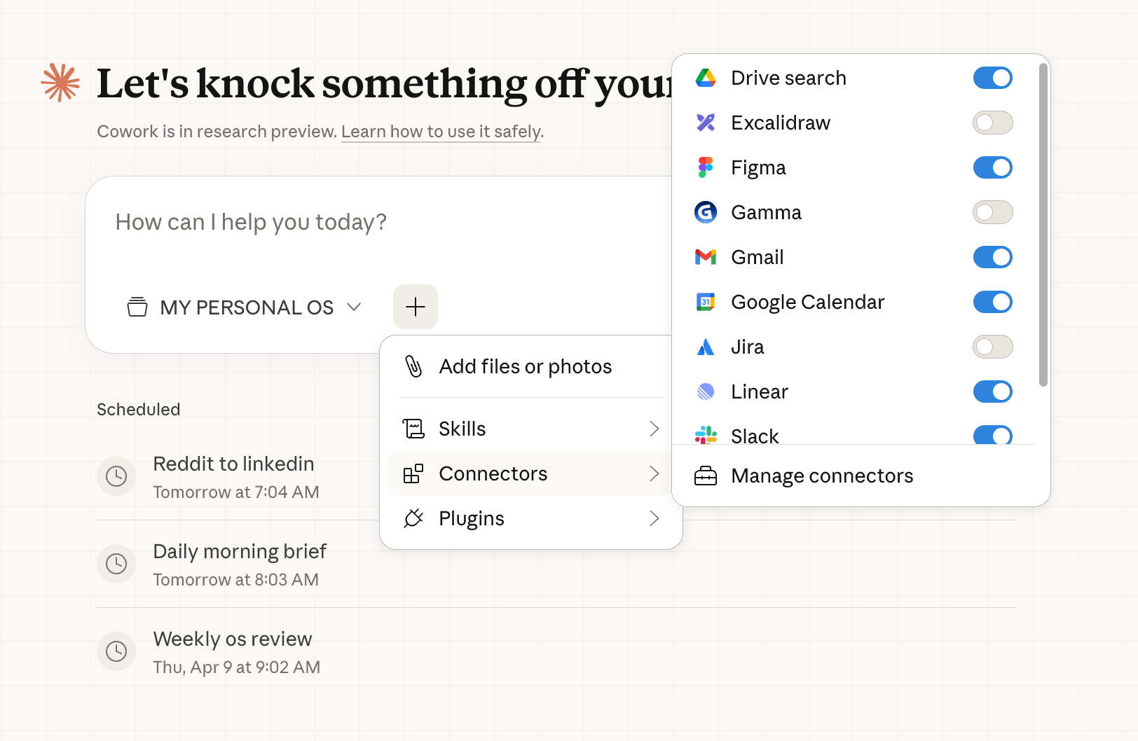 הכוח האמיתי שלו הוא בחיבורים בין היכולות השונות(קונטקסט + Skills + Connectors ואוטומציות) וביכולת לבנות לעצמנו מערכת שמכירה אותנו ולומדת עם הזמן.