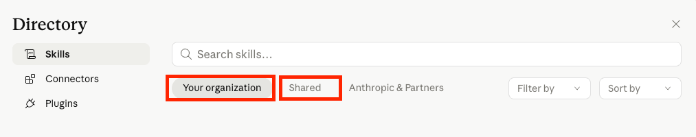 זו יכולת חדשה שאנתרופיק הוציאו רק בגרסאות Teams וEnterprise ממש לאחרונה שמאפשרת לשתף את הSkills פנימית בארגון בתוך Cowork בשתי דרכים.